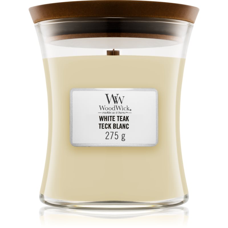 Woodwick White Teak candela profumata con stoppino in legno 275 g
